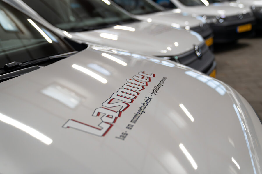 Maar een goede bedrijfswagen draait om meer dan alleen functionaliteit. Ook comfort en uitstraling spelen een grote rol voor de medewerkers van Lasmotec. “En natuurlijk ook wel het merk,” lacht Oebele. Dat de auto’s bestickerd zijn met het herkenbare Lasmotec-logo en een gave afbeelding, maakt het plaatje compleet.