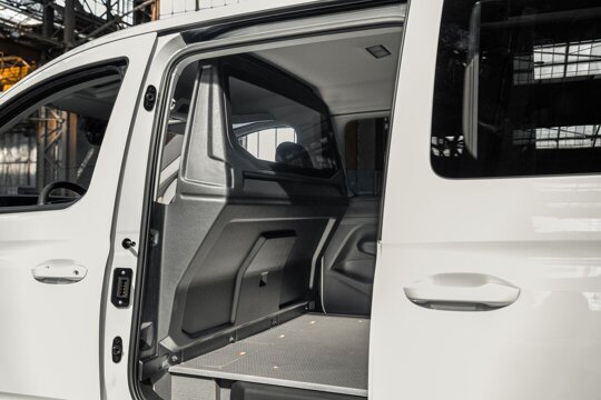 Omdat je bedrijf blijft groeien. Omdat jouw werk vraagt om ruimte én flexibiliteit. En... omdat je onderweg geen concessies wilt doen. Speciaal voor de Multivan eHybrid bieden we het Cargo Accessoire Pakket. Zo krijgt jouw Multivan eHybrid een enkele of dubbele cabine. Snel en vakkundig gerealiseerd met een speciaal ontwikkeld tussenschot en vlakke laadvloer. Zo benut je de Multivan eHybrid optimaal voor bedrijfsmatige inzet.